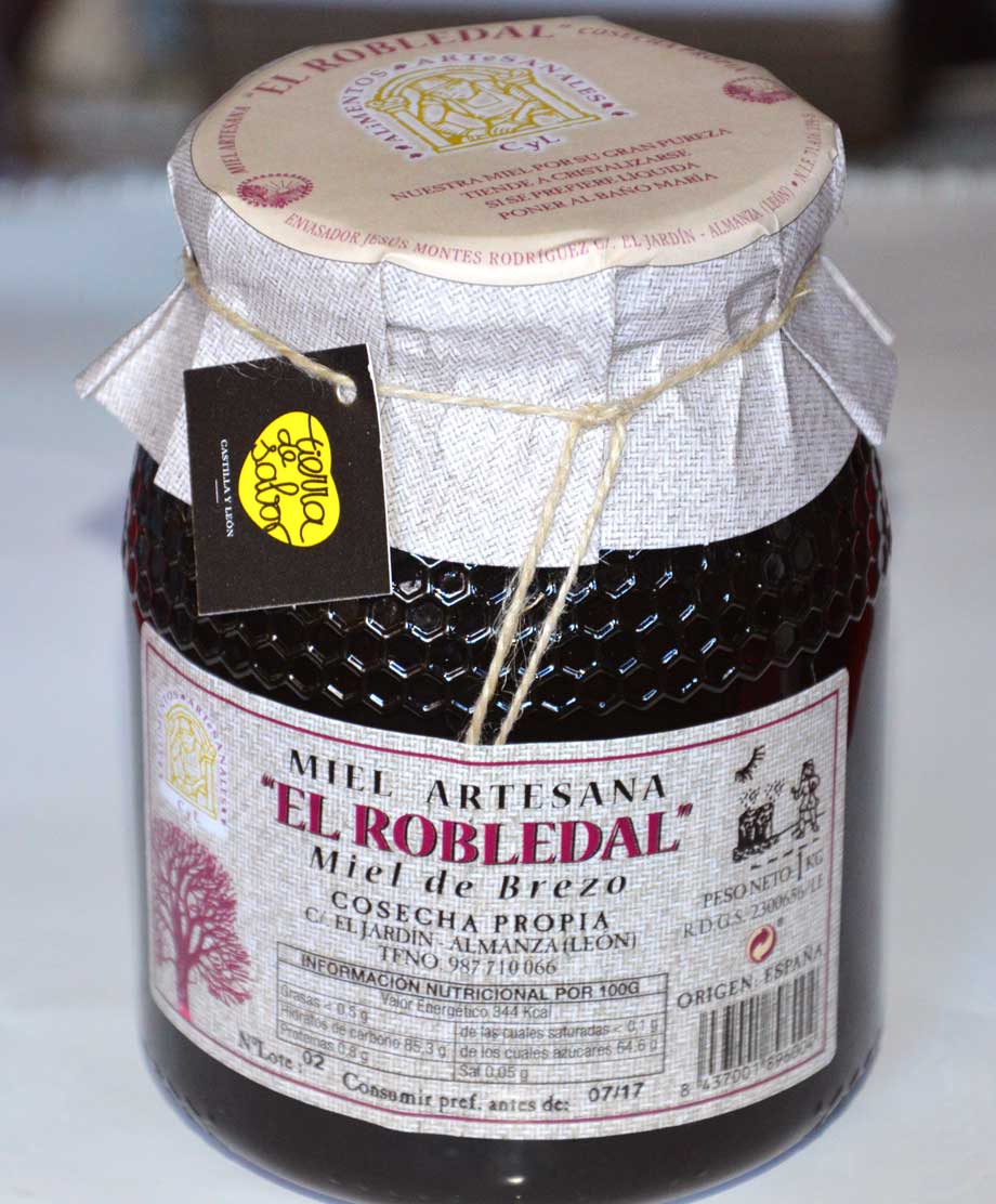 Miel de brezo, roble y flora silvestre en formato de bote de cristal de 1kg o 0,5kg.